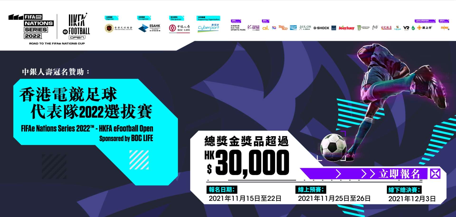 Fifae Nations Series 2022TM - Fifae Nations Playoffs Will Be A Competition For Enational Squad To Compete Against Each Other Using The EA SPORTS FIFA 22 Game (“FIFA22”). The Hong Kong Football Association Will Be Organizing The HKFA Efootball Open To Select The Top 5 Players To Represent Hong Kong. The HKFA Efootball Open Will Start From November Till Early December. The Offline Final Will Be Held On 3Rd December, 2021 At CGA Esports Stadium.