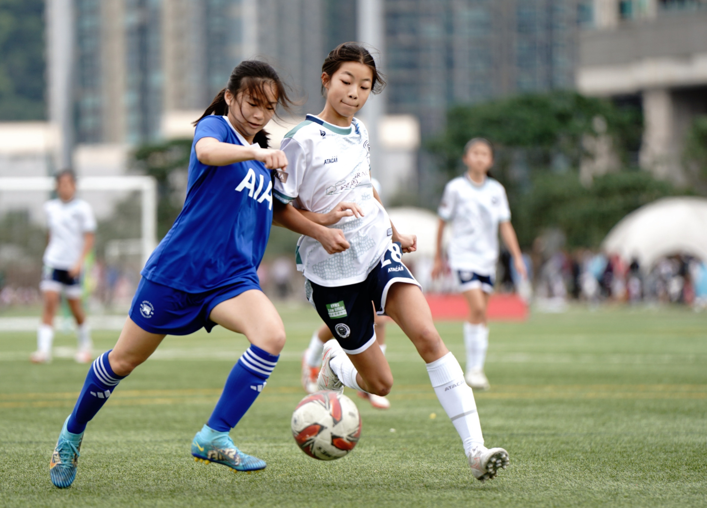 Grace Citizen started the game with an attacking mindset, launching relentless assaults on the opposition. In the 18th minute, Yeung Ching Chi Mavis delivered a precise through ball, but Yue Annabel Lucy's one-on-one attempt was expertly thwarted by the opposing goalkeeper. The tide continued in the 25th minute when Grace Citizen earned an indirect free kick inside the box. Chong Ching Lam Jaylynn latched onto a short pass from Liu Sin Huen Shelby and unleashed a thunderous strike that rattled off the crossbar, leaving the scoreline unchanged.
