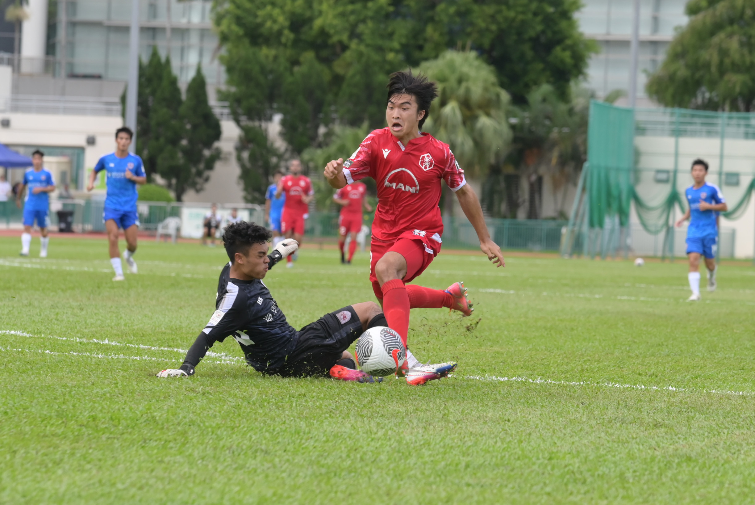 On the 25th minute, Kwoon Chung Southern exhibited some beautiful teamwork as they scored their second goal of the match. Keith and his teammates executed a one-two pass before connecting with Sasaki Shu's through ball, which allowed him to break through the defense and calmly slot the ball into the bottom right corner of the net. This goal helped the Southern District to take a comfortable 2-0 lead in the game.