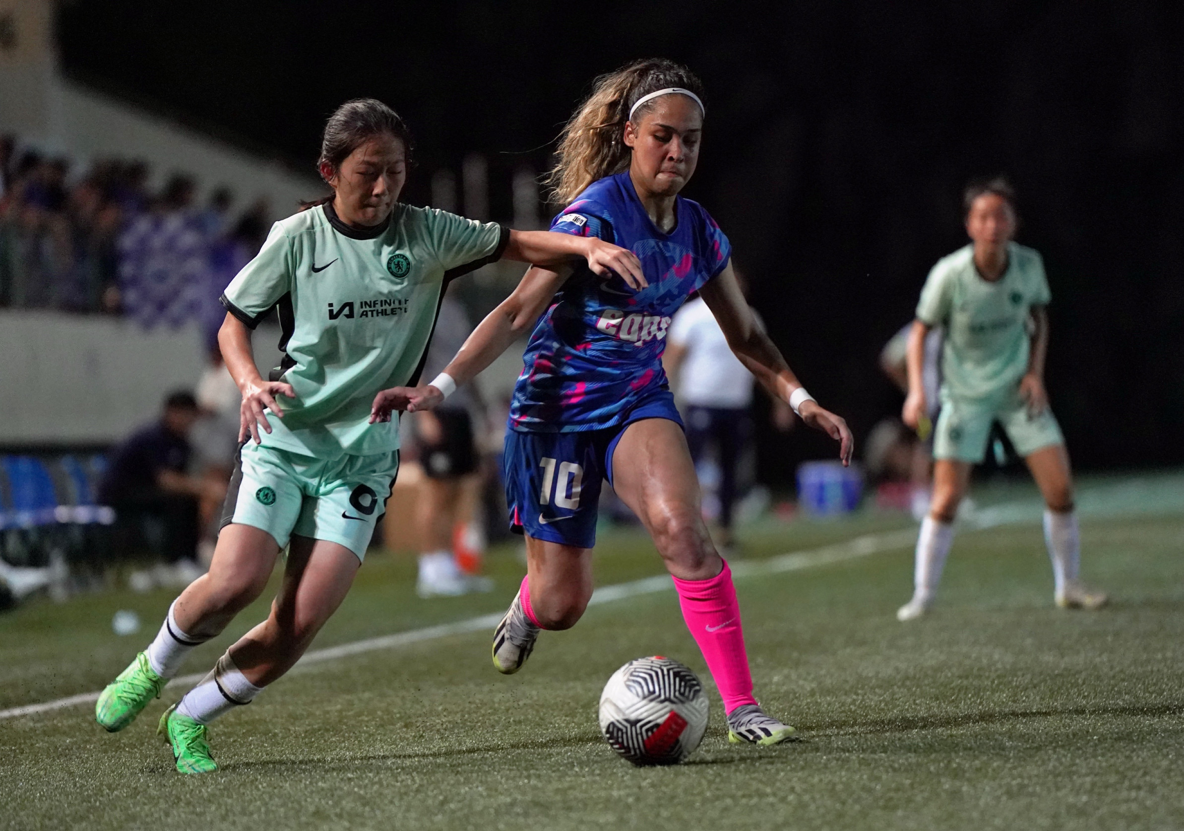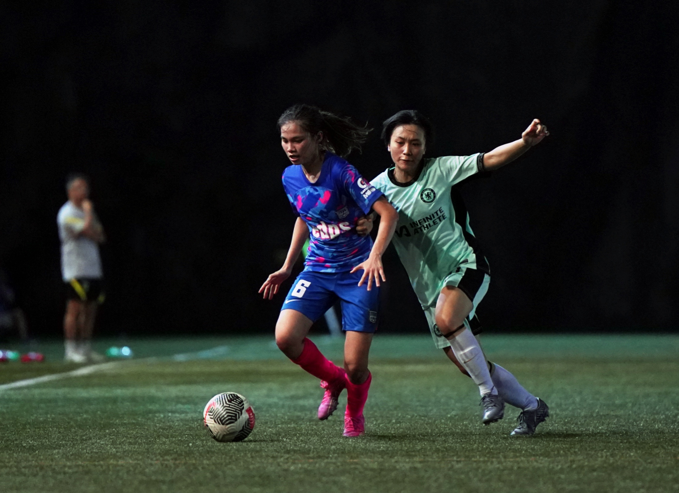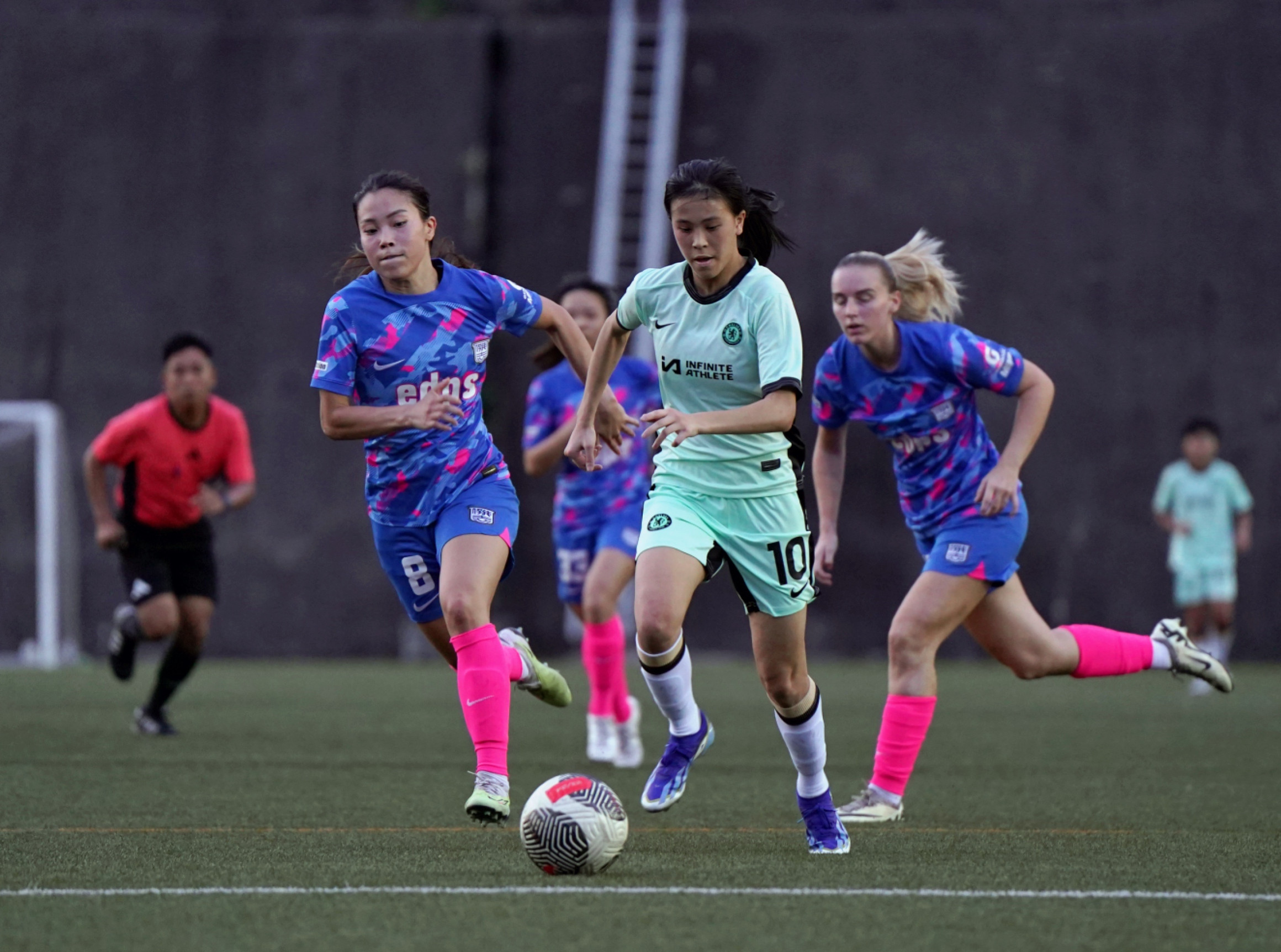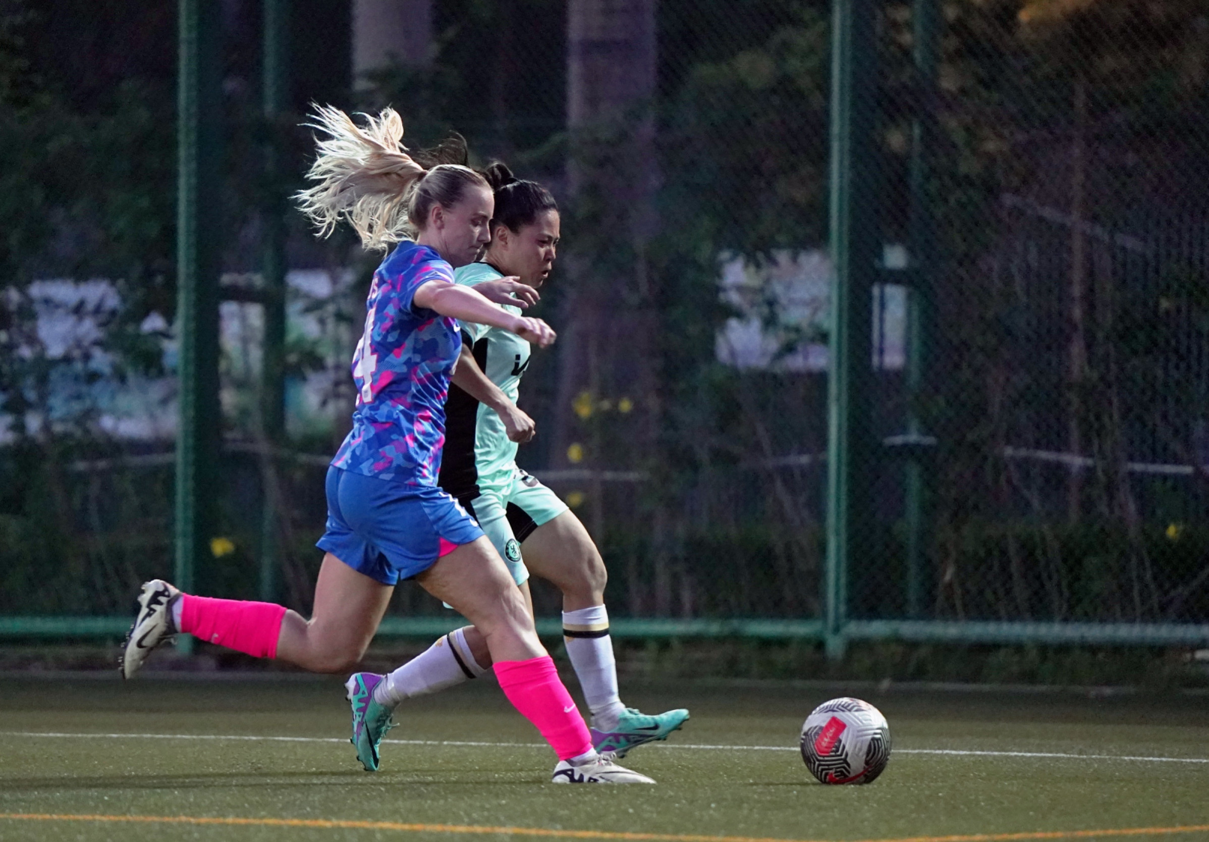 The encounter began with Chelsea FC Soccer School (HK) asserting early dominance, with Leung Hong Kiu Anke making a daring run into the penalty area in the 4th minute after receiving a through ball from Chan Yee Hing. However, her powerful left-footed strike was brilliantly saved by the goalkeeper. By the 10th minute, Chelsea FC Soccer School (HK) drew first blood. A lapse in defense by Kitchee resulted in Wong Hiu Ting finding an opportunity to feed the unmarked Chan Yee Hing, who made no mistake in unleashing a powerful left-footed strike into the back of the net, putting Chelsea FC Soccer School (HK) ahead. Despite Kitchee's desperate attempts to level the score, they were unable to craft any decisive attacks. Notably, in the 34th minute, Cheung Wai Ki's ambitious long-range effort following a pass from the right flank failed to find the target. Just three minutes later, another hopeful shot from Cheung Wai Ki sailed over the crossbar. However, Kitchee continued to press, with Kwong Wing Yan's audacious attempt from outside the penalty area being thwarted by the goalkeeper. In another instance, a cross from Chung Pui Ki found Cheung Wai Ki, whose header was cleared off the line by a vigilant Chelsea defense. The first half concluded with Chelsea FC Soccer School (HK) leading 1:0.
