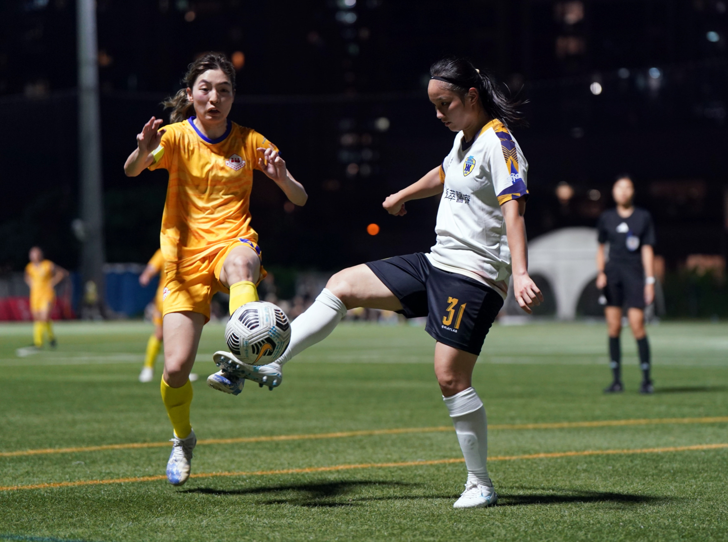 The champions-elect started the match in commanding fashion, controlling the tempo from the first whistle. Their early dominance nearly paid dividends in the 7th minute when striker Siu Ka Hei latched onto an incisive through ball, only to be denied by the woodwork in a one-on-one situation with Hoi King's goalkeeper Chan Hoi Man. The relentless pressure continued as Ho Tsz Ching showcased exceptional footwork in the 14th minute, weaving past two defenders before unleashing a left-footed effort that was expertly parried away by the in-form Chan Hoi Man. The attacking onslaught persisted when pacey winger Siu Ka Hei terrorized the right flank moments later, cutting inside with purpose before firing a venomous left-footed drive that drew another spectacular save from the keeper. Hoi King's first meaningful attack came in the 20th minute when forward Chan Tin Sung found space in the danger area but squandered the opportunity by dragging their close-range effort wide of the target.