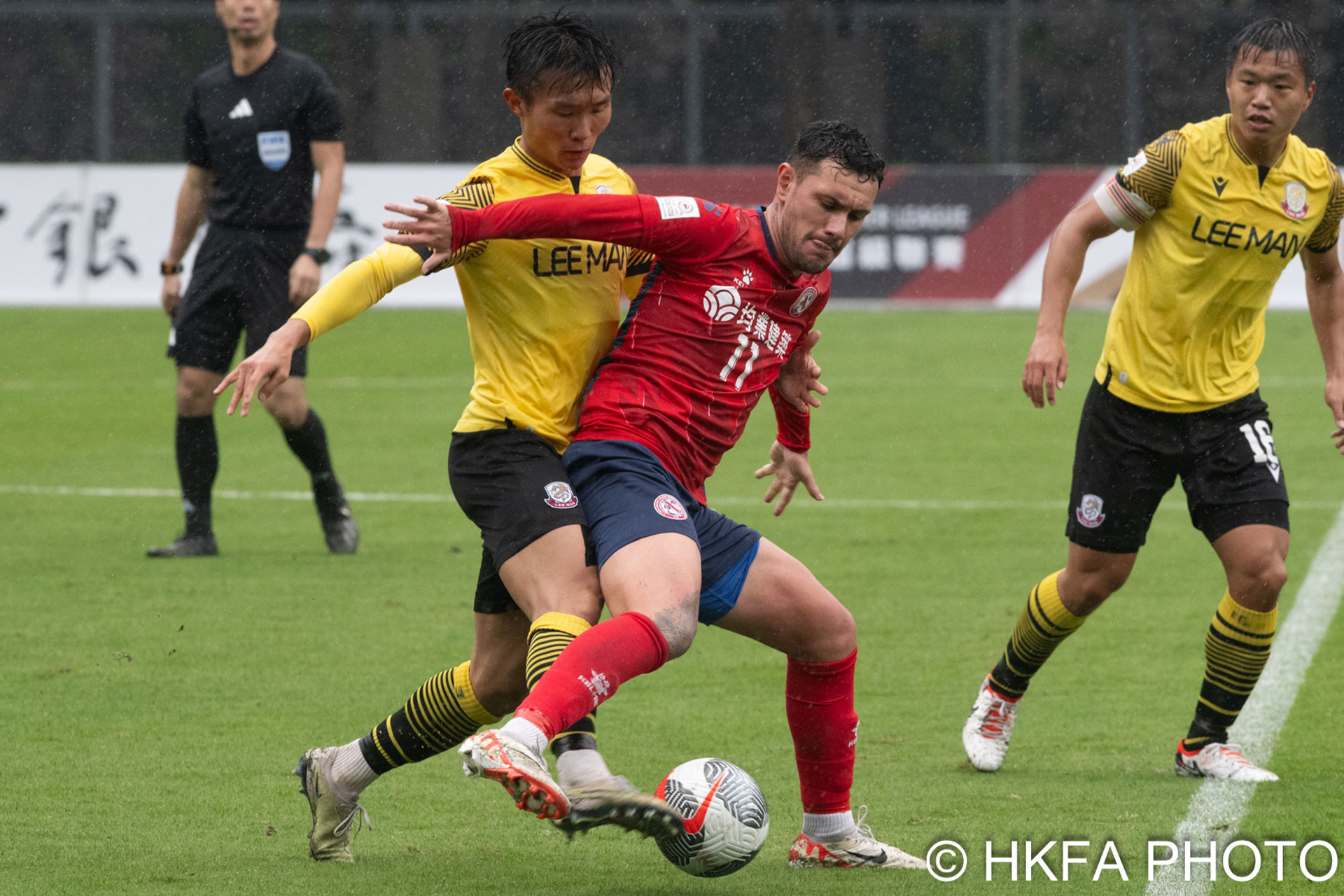 In the second half, Lee Man maintained their control over the game. Tsui Wang Kit managed to find the back of the net from a close range after a well-executed header from Li Ngai Hoi, but the goal was disallowed for offside.