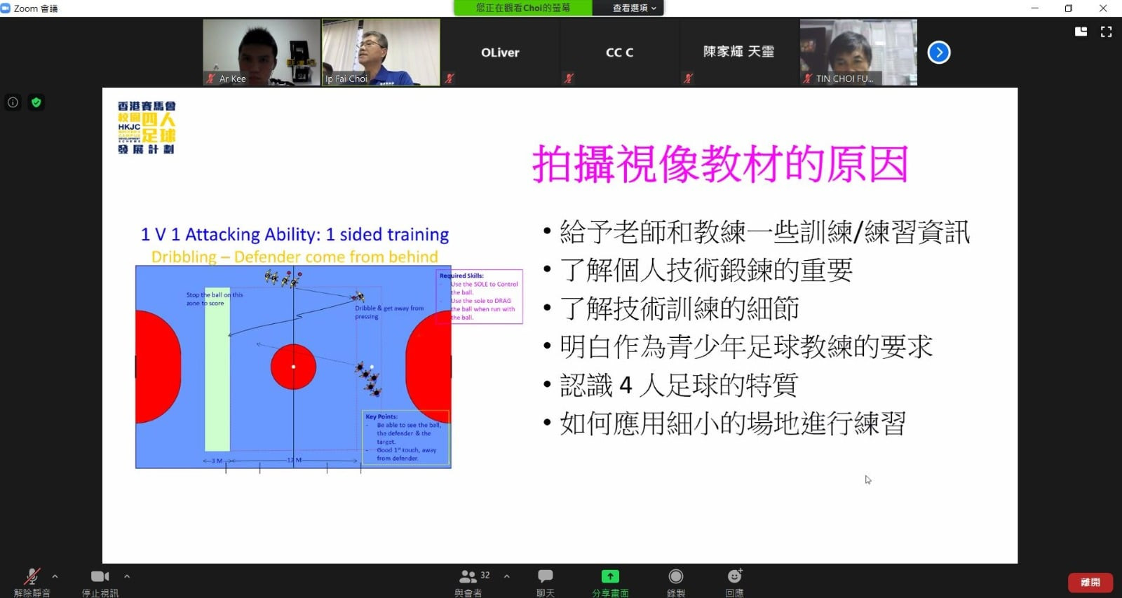 五人足球代表隊教練、地域教練練網上工作坊(一月份)