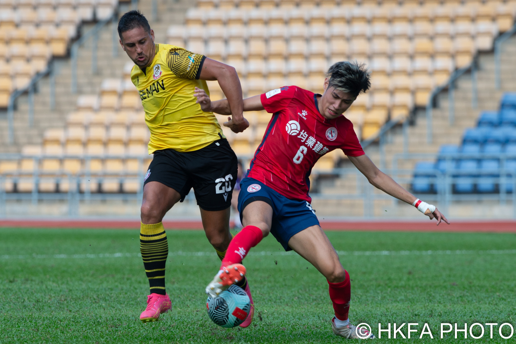 In the second half, Lee Man continued to press for another goal. On the 50th minute, Acosta's long pass created a clear-cut chance for Cheng Siu Kwan, but the goalkeeper made a timely save to deny him. However, Kwan Yip North District mounted a spirited comeback and seized control of the game afterwards.On the 58th minute,Lam Lok Kan Jordan connected with a pass from Kendy Renato and unleashed a powerful shot in the penalty area, only to see it hit the crossbar after a slight deflection off a defender.Crownity North District introduced several substitute players to bolster their attacking prowess, and their efforts paid off on the 70th minute. Dai Tsz Hin received a long ball from Lau Kwan Ching and embarked on a blistering run down the left flank. With composure, he squared the ball to the unmarked Lok Hong Wai, who calmly slotted it into an empty net, leveling the score at 1:1. On the 80th minute,Crownity North District had another chance to take the lead, but Weverton's shot from the edge of the box sailed over the crossbar. Late in the second half, Lee Man also had a chance when Law Cheuk Hei shook off his marker on the left flank, but his effort narrowly missed the target.