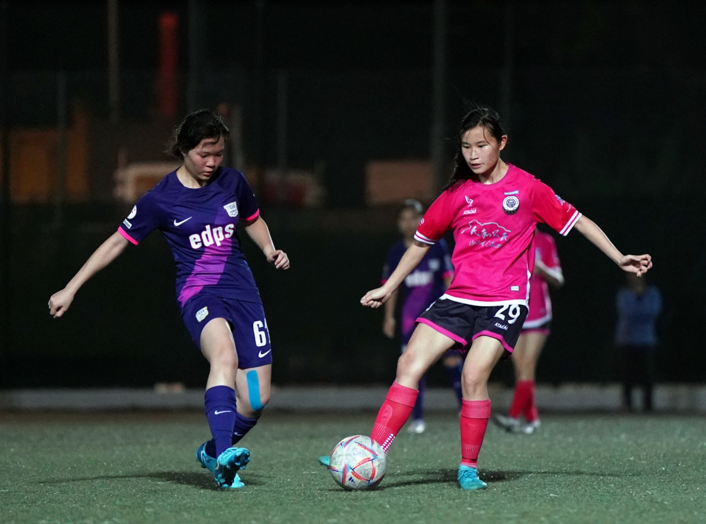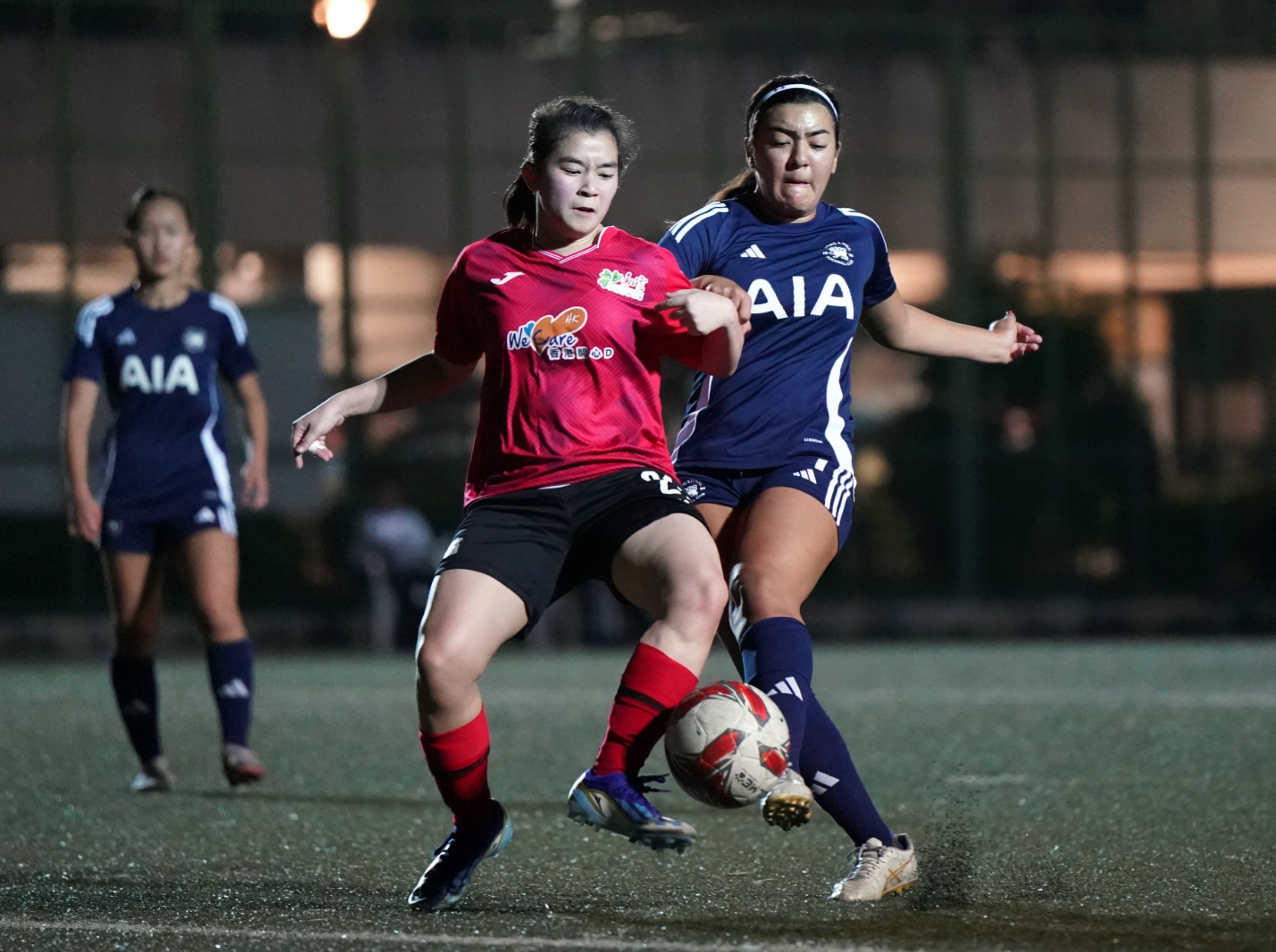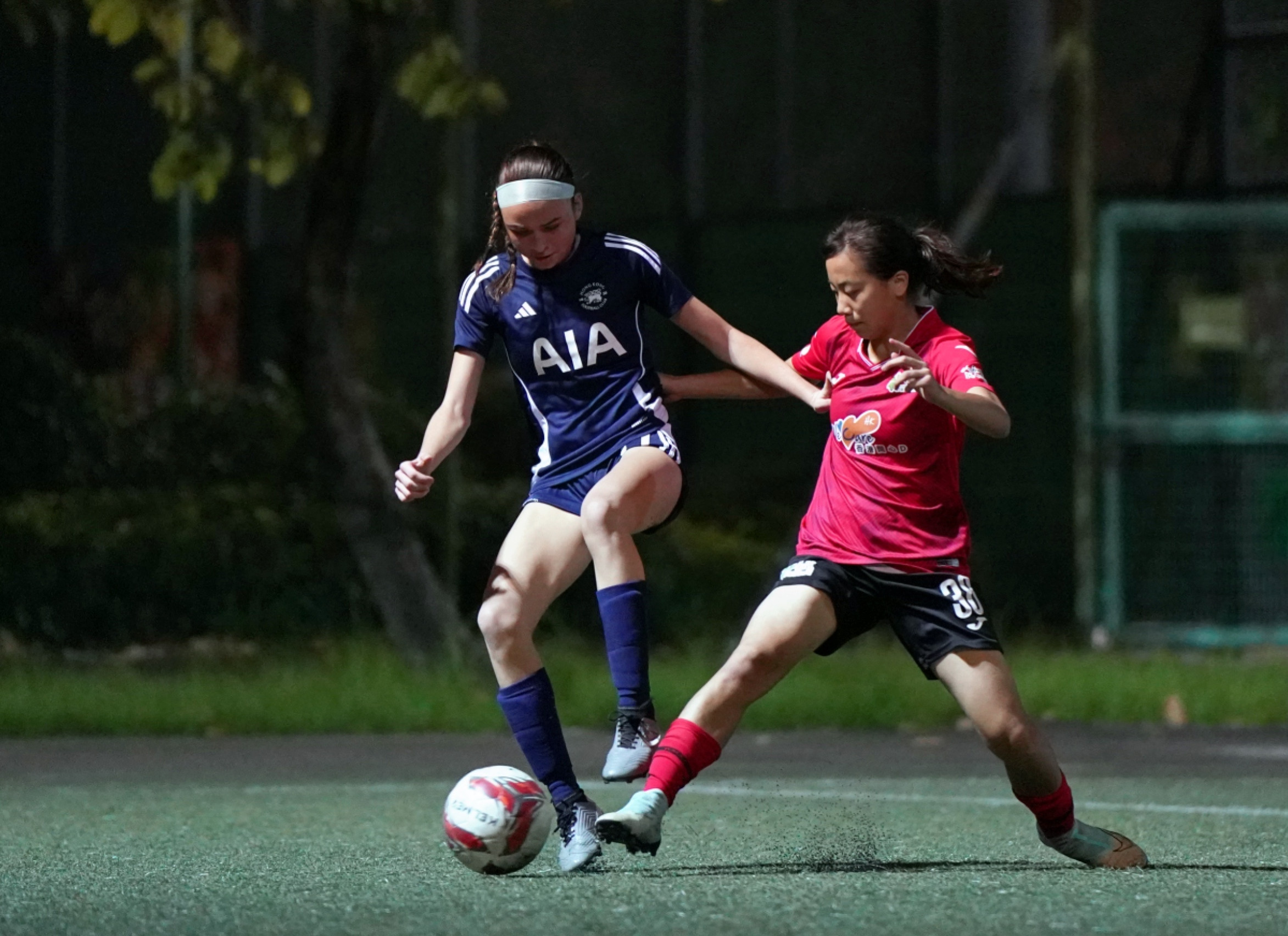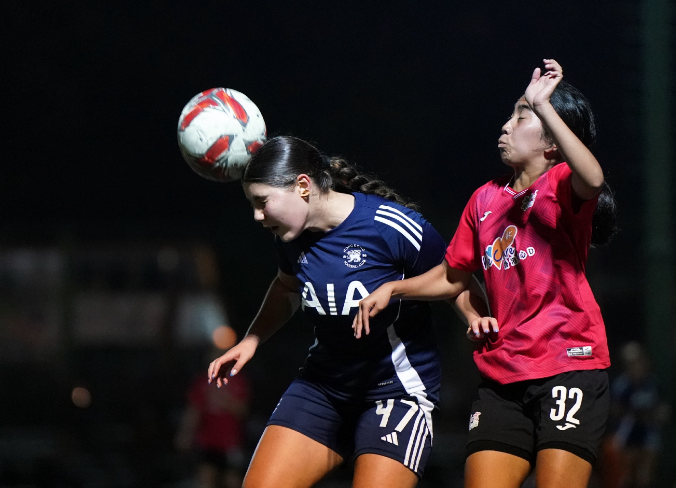 港會開賽後積極搶攻,頻頻在兩翼發動攻勢,不過數次傳中均被和富社企成功解圍,直到17分鐘港會接連有射門機會,先有McCaughey Erin Grace接應鄭明儀右路傳中近門射斜,之後冉悅的遠射亦被門將劉詩琪撲出。到32分鐘港會再有黃金機會,冉悅接應左路傳送,快過出迎的劉詩琪一步起腳可惜未能命中目標。