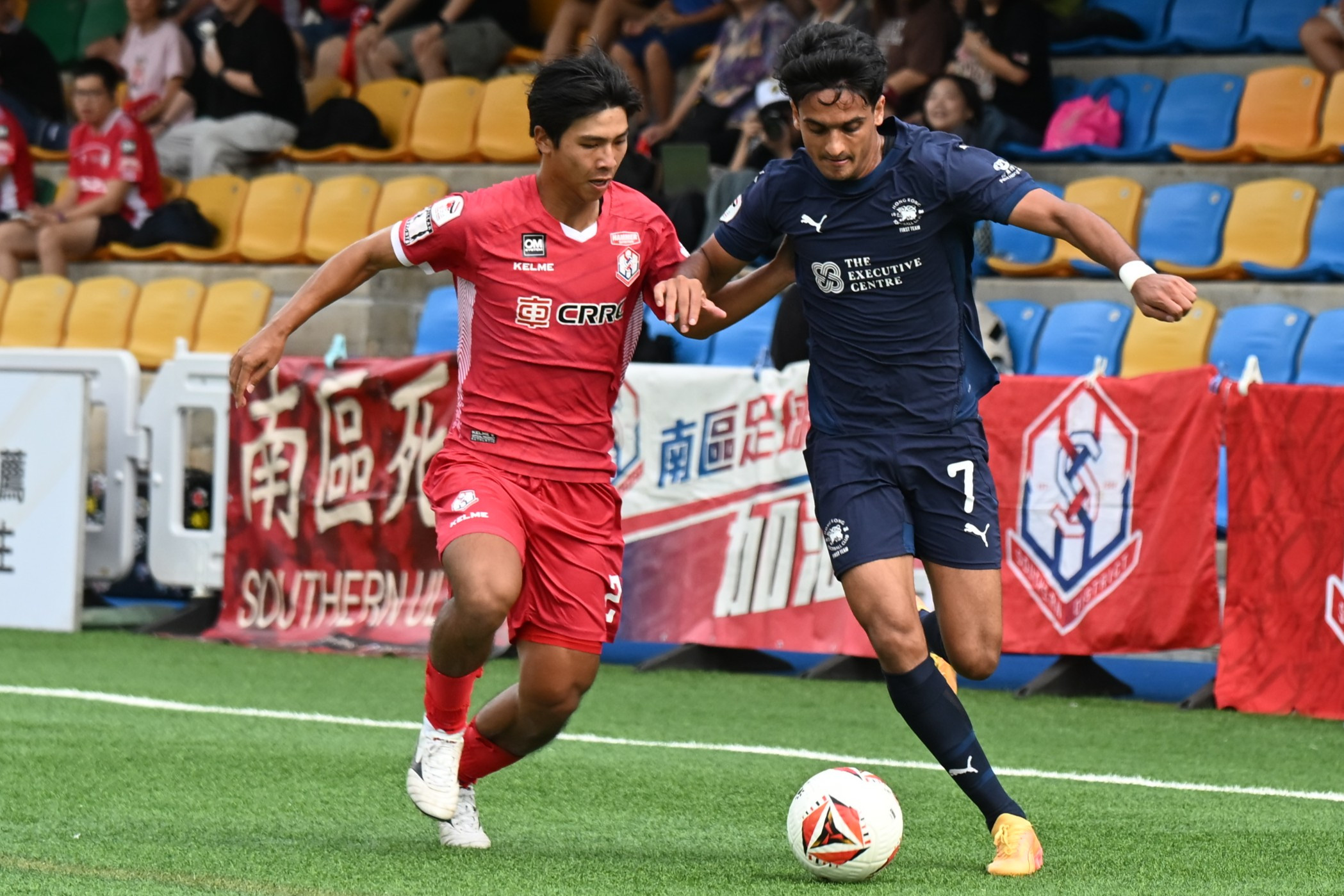 港會主場迎戰南區。開賽僅6分鐘,南區率先製造險象,亞哥斯達長傳直送前場,美華沙解圍不遠,史提芬彭利拿面對出迎的王子聰挑射,但被費利皮爾倒掛在門線前救回。8分鐘後,佐佐木周突破至左路窄角度起腳,皮球僅擊中網側。37分鐘,申壹守右路傳中,史提芬彭利拿頂向中路,艾文奴倒掛施射被王子聰沒收。40分鐘,艾文奴直線妙傳,史提芬彭利拿再獲單刀機會但被王子聰成功撲救。補時階段,關歷克爭頂時踢中宋柱浩頭部,球證經VAR確認後僅出示黃牌警告。其後關歷克再度傳中,陳浩嘉近門射門被伍瑋謙擋出,雙方半場互交白卷。