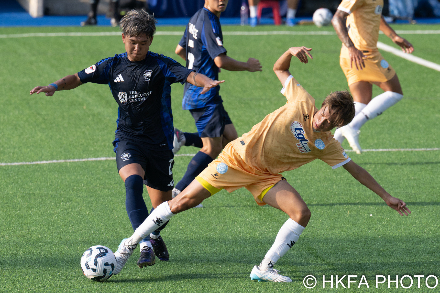 上半場2分鐘,雷仙奴開出右路角球,羅素頂出解圍,岡本玲仁於禁區頂將球吊入禁區,林堂真頭槌二傳給尾柱位的劉智樂迎頂入網,標準流浪率先打開1:0的紀錄。標準流浪繼續發動攻擊,雷仙奴把握敵衛解圍不遠起腳笠射未中目標。19分鐘,峇夏比中路得球交加斯特夫扣過林堂真再傳給陳灝在避過林遼太後回傳給加斯特夫,加斯特夫隨即再交回陳灝於禁區邊起右腳抽射入網替港會扳成1:1平手。其後雙方各有一次射門機會,先有標準流浪的曉高把握陳浩嘉接應黎皚韜傳球後失腳在截得來球於中場起右腳直射被費查橫身擋出後再接回,後有港會的陳灝左路斬中,梁煒烽頭槌解圍不遠,麥美倫於禁區起右腳施射被陳冠燊橫身接去。34分鐘,曉高左路出擊推過羅素後傳入中路,劉智樂接應將球後傳給巴拉克起右腳抽射,費查托球中橫楣彈出,劉智樂門前起左腳補中得手,惟越位在先,入球被判無效。41分鐘,劉智樂接應雷仙奴左路開出角球施頭槌攻門,費查撲到亦告入網,個人梅開二度替標準流浪以2:1再度領前結束上半場賽事。
