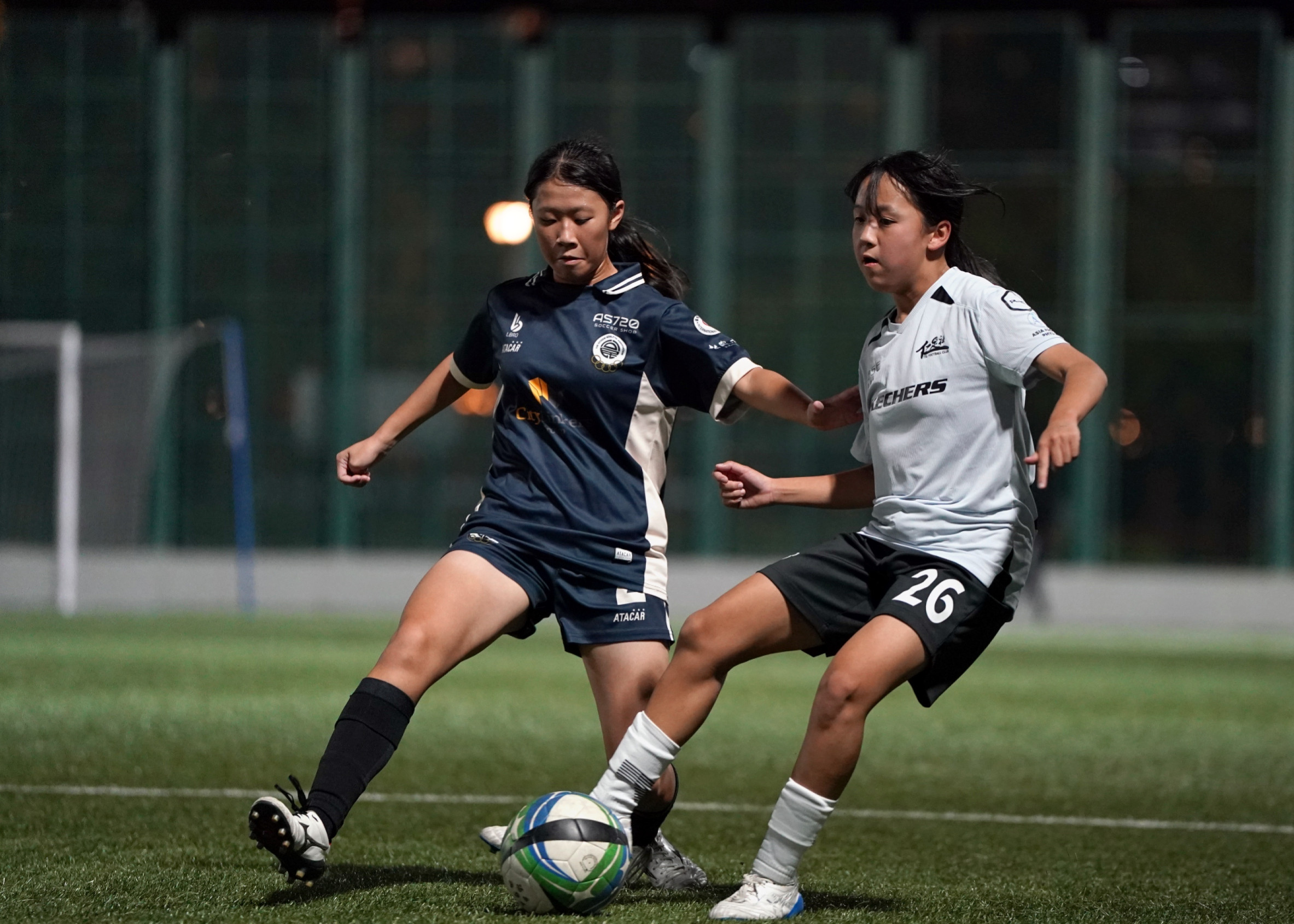 連城公民開賽迅速佔據上風,8分鐘邱梓晴接應莊靜琳左路角球起腳遠射可惜中楣彈出。兩分鐘後連城公民成功先開紀錄,表現活躍的莊靜琳左路傳中,邱梓晴門前混戰中勁射破網成10。領先的連城公民繼續搶攻,23分鐘有黃芷翹的遠射被門將李思恩撲出。之後莊靜琳右嘔擺脫對手後傳中,可惜梁靖潼近門頭鎚頂斜。直到完半場前連城公民終於擴大優勢,鍾穎潼接應隊友長傳後扭過後衛,面對門將乖巧笠射入網。上半場連城公民以20領先。